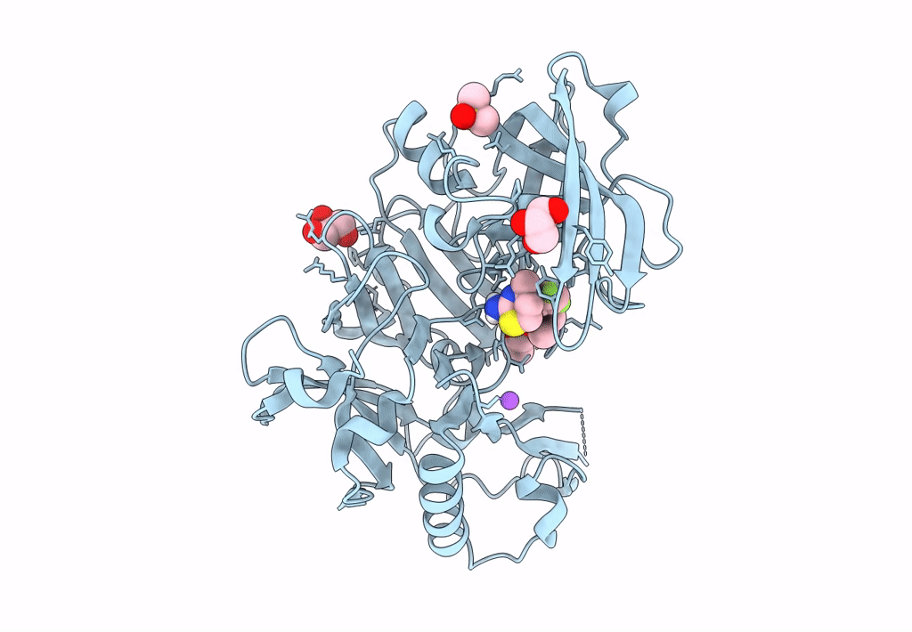 Method: X-RAY DIFFRACTION Resolution:2.96 Å Release Date: 2017-01-11 Classification: HYDROLASE/HYDROLASE inhibitor Ligands: 74B, IOD, NA, GOL, DMS, CL |