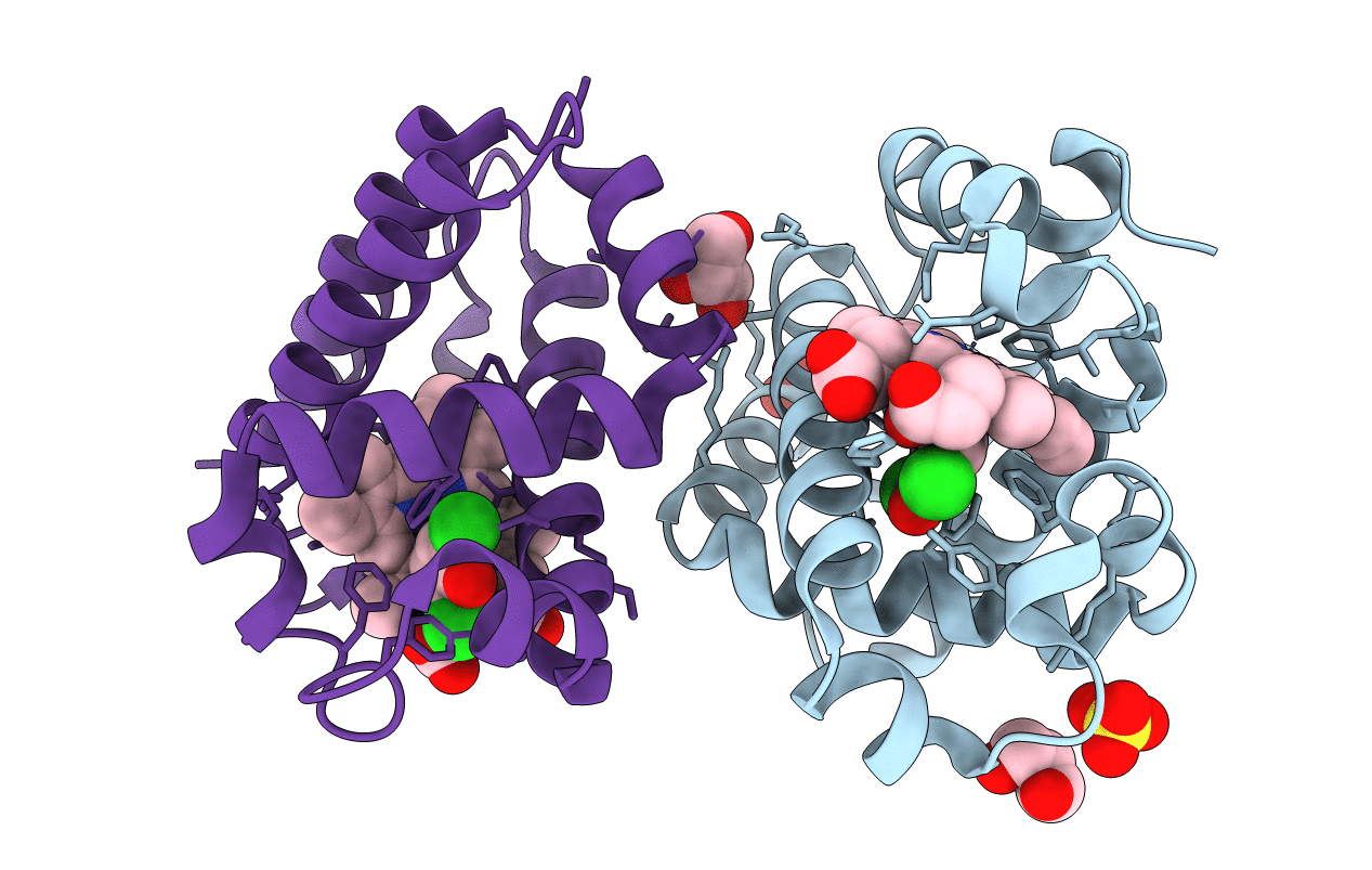 Method: X-RAY DIFFRACTION Resolution:1.75 Å Release Date: 2021-10-20 Classification: METAL BINDING PROTEIN Ligands: HEM, SO4, OXY, PG0 |